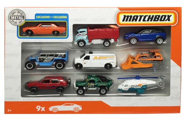 Μεταλλικά οχήματα Matchbox σε συσκευασία που περιλαμβάνει 9.