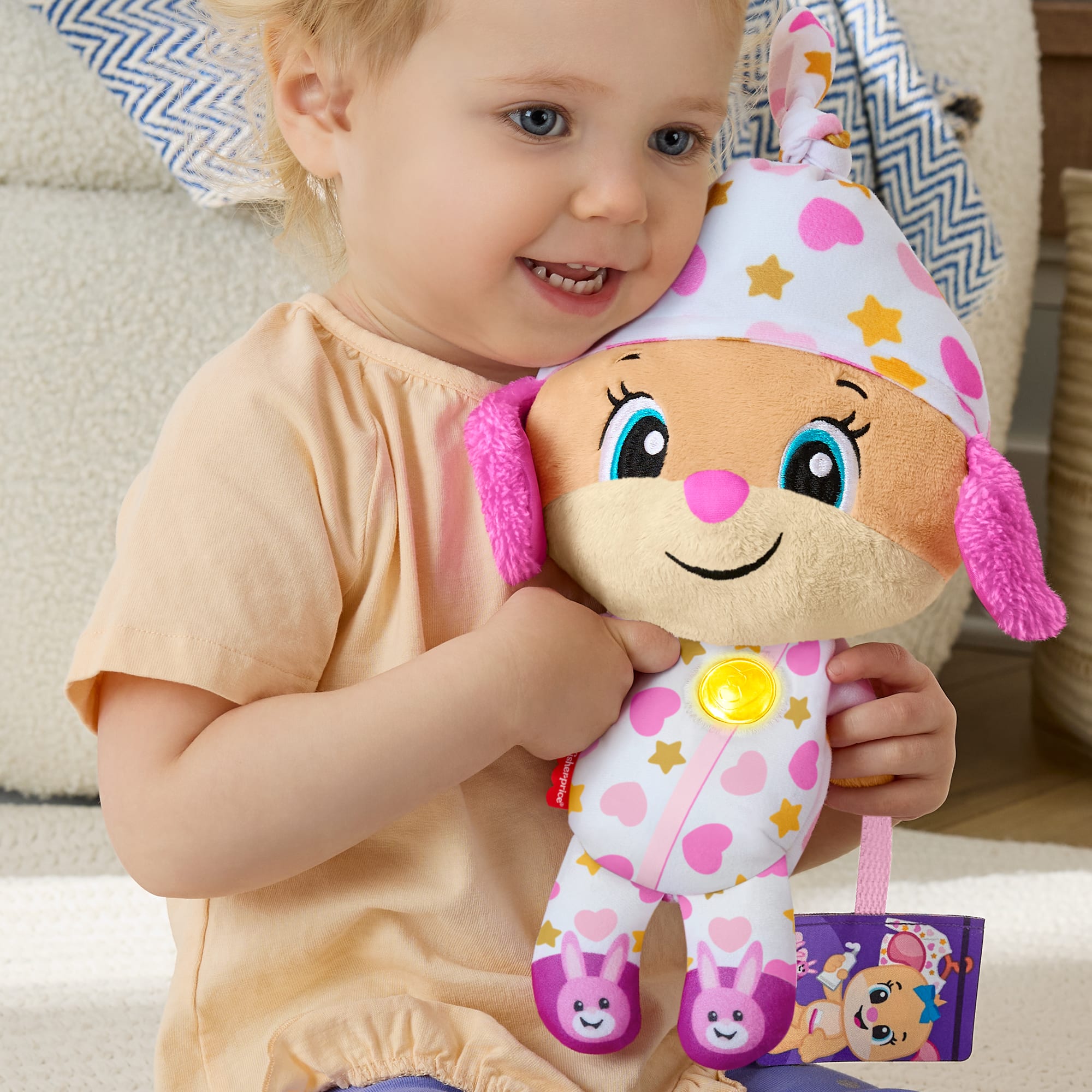 Το Εκπαιδευτικο Σκυλάκι Ύπνου της Fisher-Price είναι ένα ήρεμο, μικρό φιλαράκι που ενθαρρύνει τα νήπια να χαλαρώσουν με τραγουδάκια, ήχους και φράσεις. Με χαριτωμένες πιτζάμες και ένα «βιβλιαράκι», αυτό το αξιολάτρευτο σκυλάκι βοηθάει τα παιδιά να χαλαρώσουν με τραγουδάκια για αγκαλιές, το πλύσιμο και το βούρτσισμα των δοντιών. Απλά πιέστε την καρδιά του για να τη δείτε να φέγγει απαλά, ενώ ακούγονται χαλαρωτική μουσική, ήχοι και φράσεις. Απαιτούνται 2 μπαταρίες ΑΑ (περιλαμβάνονται). Τα χρώματα και τα σχέδια ενδέχεται να διαφέρουν.
