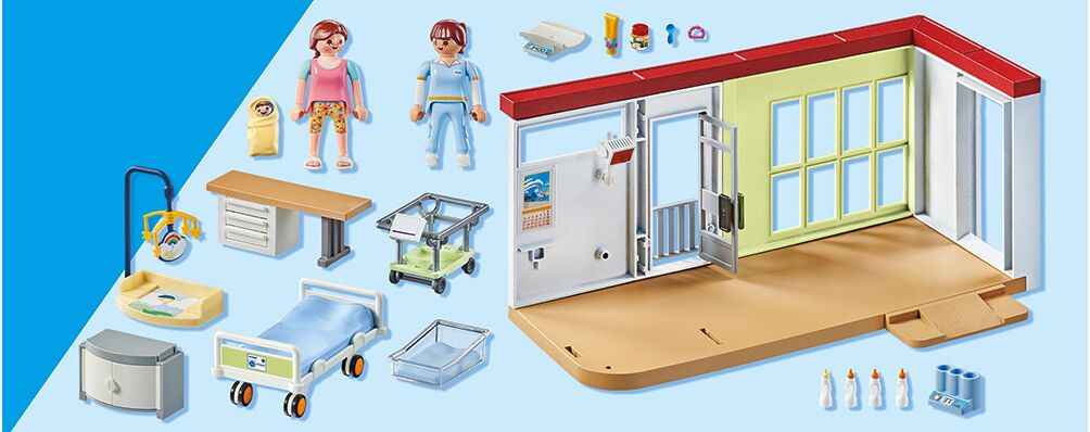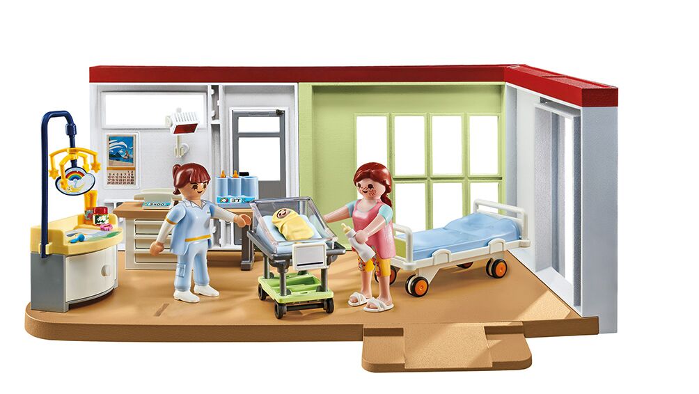 Καλώς ήρθατε στη ζωή! Στο θάλαμο μετά τον τοκετό, προσφέρεται η κατάλληλη φροντίδα σε μητέρα και μωρό. Το όνομα του μικρότερου μέλους της οικογένειας μπορεί να αναγραφεί στην πινακίδα πάνω στο κρεβατάκι και υπάρχουν ζυγαριές για τον έλεγχο του βάρους του μωρού. Με τραπέζι αλλαγής ρούχων, λάμπα θέρμανσης, μπιμπερό για το μωρό και πολλά άλλα αξεσουάρ, αυτό το σετ είναι ένας υπέροχος κόσμος παιχνιδιού για παιδιά ηλικίας 4 ετών και άνω.